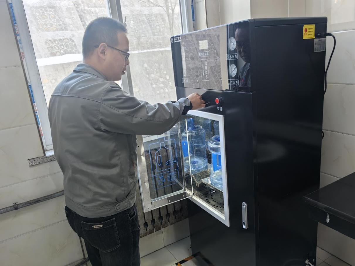 滿足職工飲水需求,鹿臺山煤業在辦公樓逐層安裝凈水直飲設備,并為各辦公室配備了體積更小、接取更方便的飲水桶,在保障飲水安全的同時,提高了職工“即接即飲”的便捷度。“現在每個樓層都安裝了凈水機,接水飲水真的太方便了!”前來接水的職工幸福地說道。
